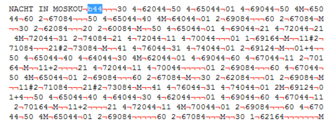 Schauen wir in die Daten, sehen wir, dass als erstes nach dem Titel des Musikstücks der Wert "b44" eingelesen