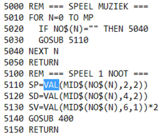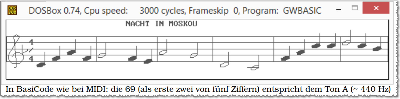 Note in die Werte für Höhe, Länge und Lautstärke zurückverwandelt und der Ton durch den Aufruf in Zeile 5140 abgespielt.