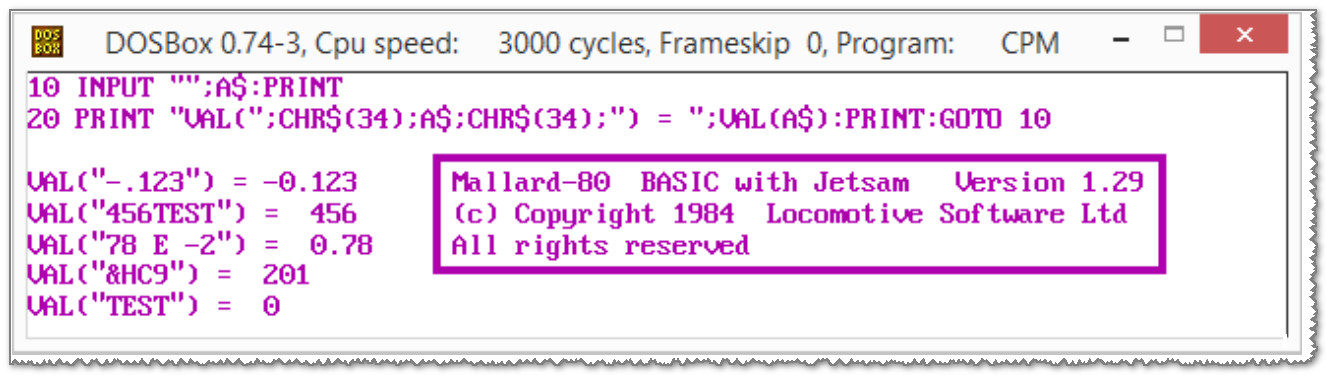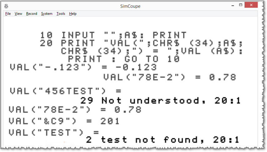 Zahl zurückgegeben (z. B. in Mallard Basic ... siehe rechts), oder es wird wie im Falle des SAM Coupé (ebenfalls rechts) ebenfalls