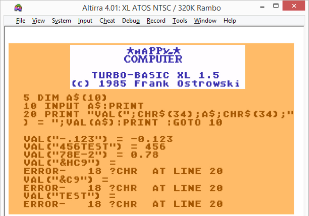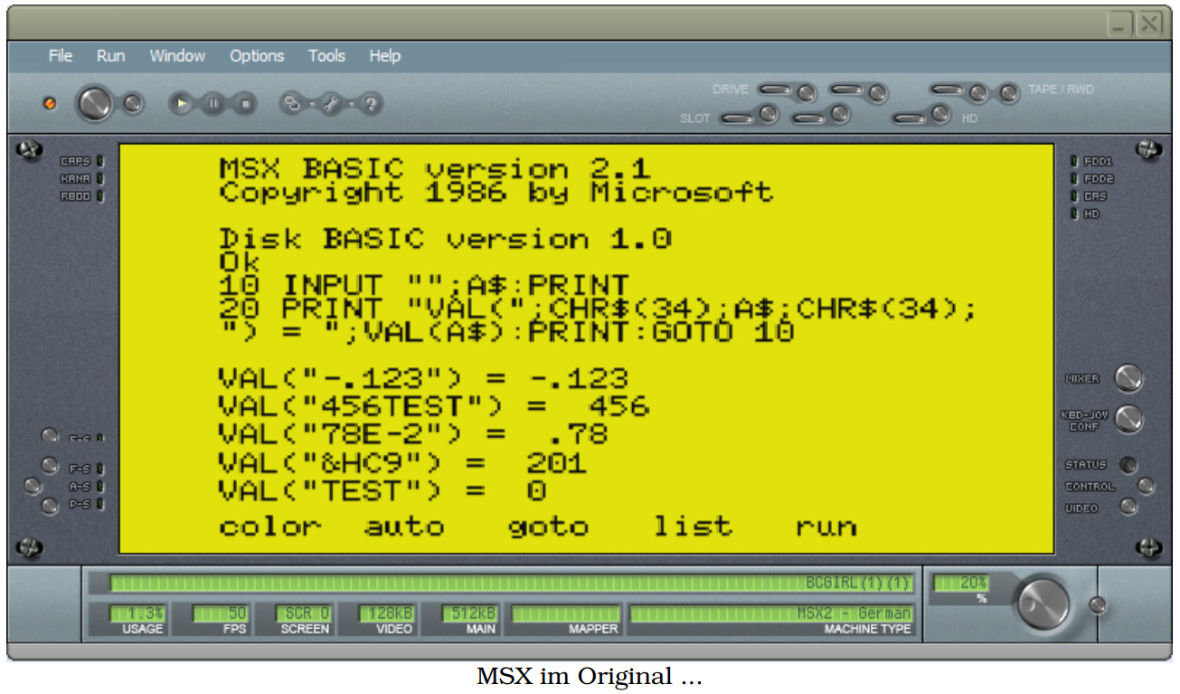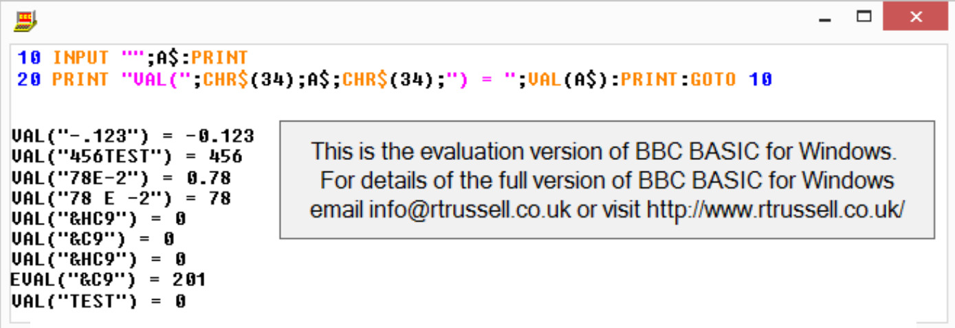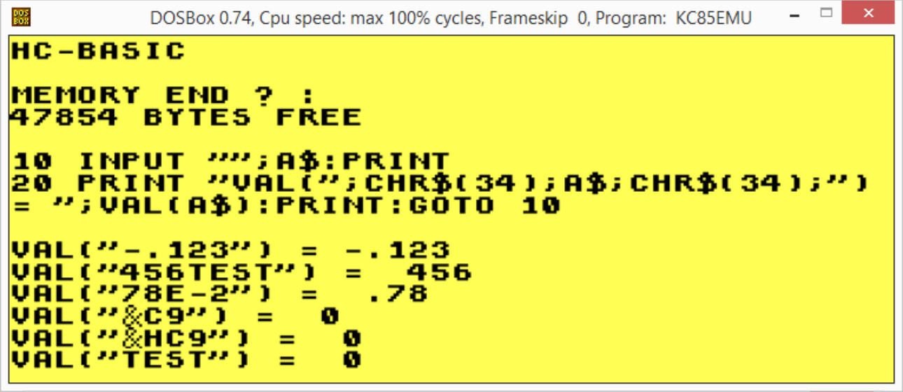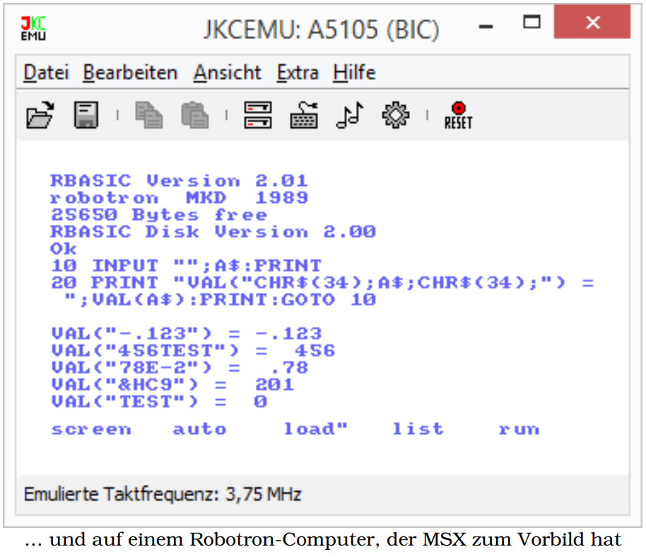 Beispiele: A$= "1.4E6": A=VAL (A$) nach Ablauf ist A=1,4E6