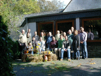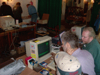 Wieder einmal wurden die alten Rechner aus dem Keller gezerrt, Monitore und Kisten verladen, manche packten ihre Familie mit ein, und los ging’s ins Siebengebirge, wo am 6. Oktober 2007 die beiden Clubs der Joyce-Freunde und der Spectrum- und SAM Anhänger ihr gemeinsames Treffen geplant hatten, und gut 20 Leute, etwa zur Hälfte Joyce- und Spectrumfreunde, hatten sich in der Margarethenhöhe bei Ittenbach eingefunden. Mein Bericht beginnt am Samstagmorgen in Edertal beim Dirk Berghöfer, wir hatten einen sehr großen Monopoly Spieltisch für Bernhard Lutz (Luzie) mit dabei. Neben dem passte nicht mehr ganz so viel ins Auto, so dass wir außer unsren Sams nur wenig weitere Computerteile mitgenommen hatten. Nach der gut 2-stündigen Fahrt kamen Dirk und ich gut in Ittenbach an, und brachten erstmal unsere Geräte in den Raum. Bald darauf war das vertraute Surren von Festplatten, Lüftern und Sperrschwingern zu hören, manches WAVE wurde abgespielt, Johan Koelman hackte einen seiner Einzeiler BASIC Programme in den Spectrum ein, die Joyce-Laufwerke kamen wieder zum Leben. Ich holte mir Kaffee und schaute mir die Computer an. Die Joycer machten am Samstagmorgen noch ihr jährliches Mitgliedertreffen, bei dem beschlossen wurde, dass es im nächsten Jahr in Ittenbach kein Usertreffen geben wird. Wir werden versuchen, ein gemeinsames Joyce - SPC Treffen in Kassel oder Wolfhagen zu etablieren.